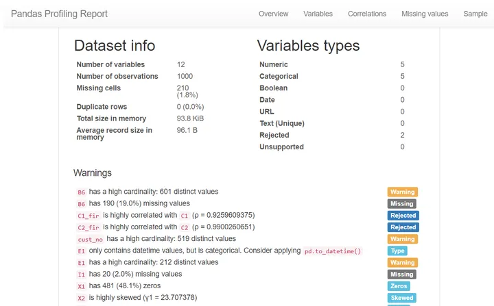 # 一键数据分析 import pandas_profiling pandas_profiling.ProfileReport(df)
