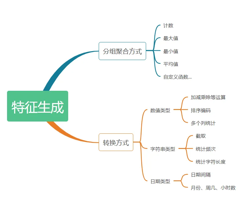 特征生成方法可以分为两类:聚合方式、转换方式。
