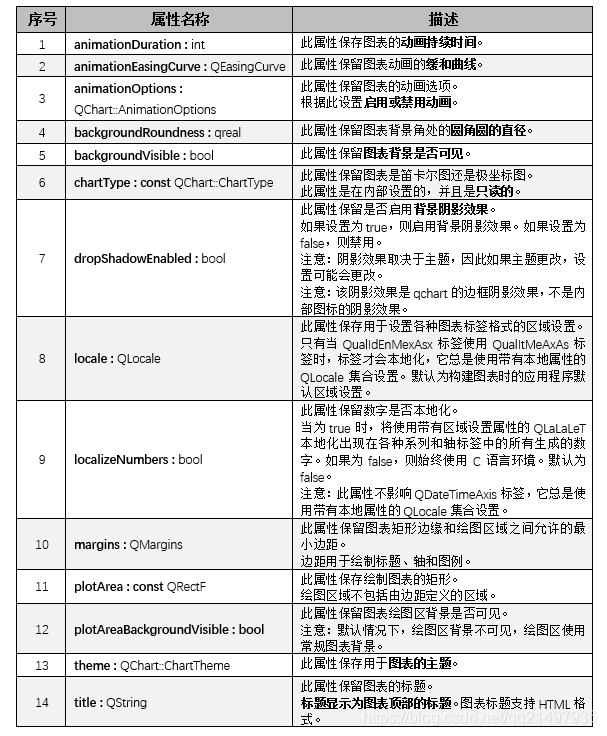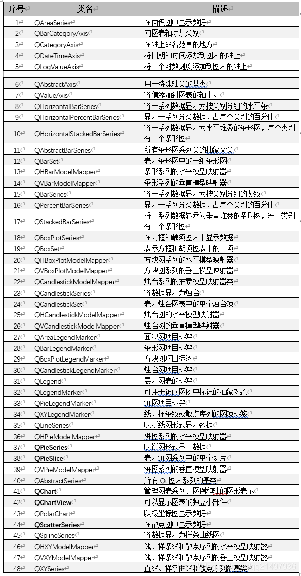 - QChart:类似于容器,可以加载不同的表,通过QChartView显示;