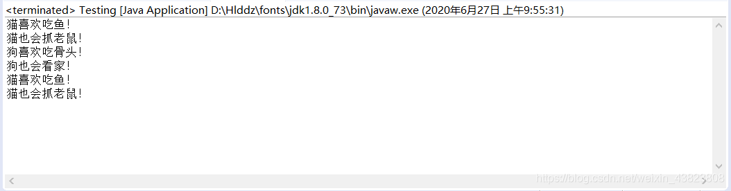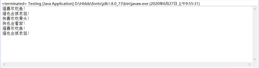 show(new Cat());//等价于下面的这两行代码 Animal a=new Cat();//这两行更能体现“静态方法由类调用”这句话 Testing.show(a);
