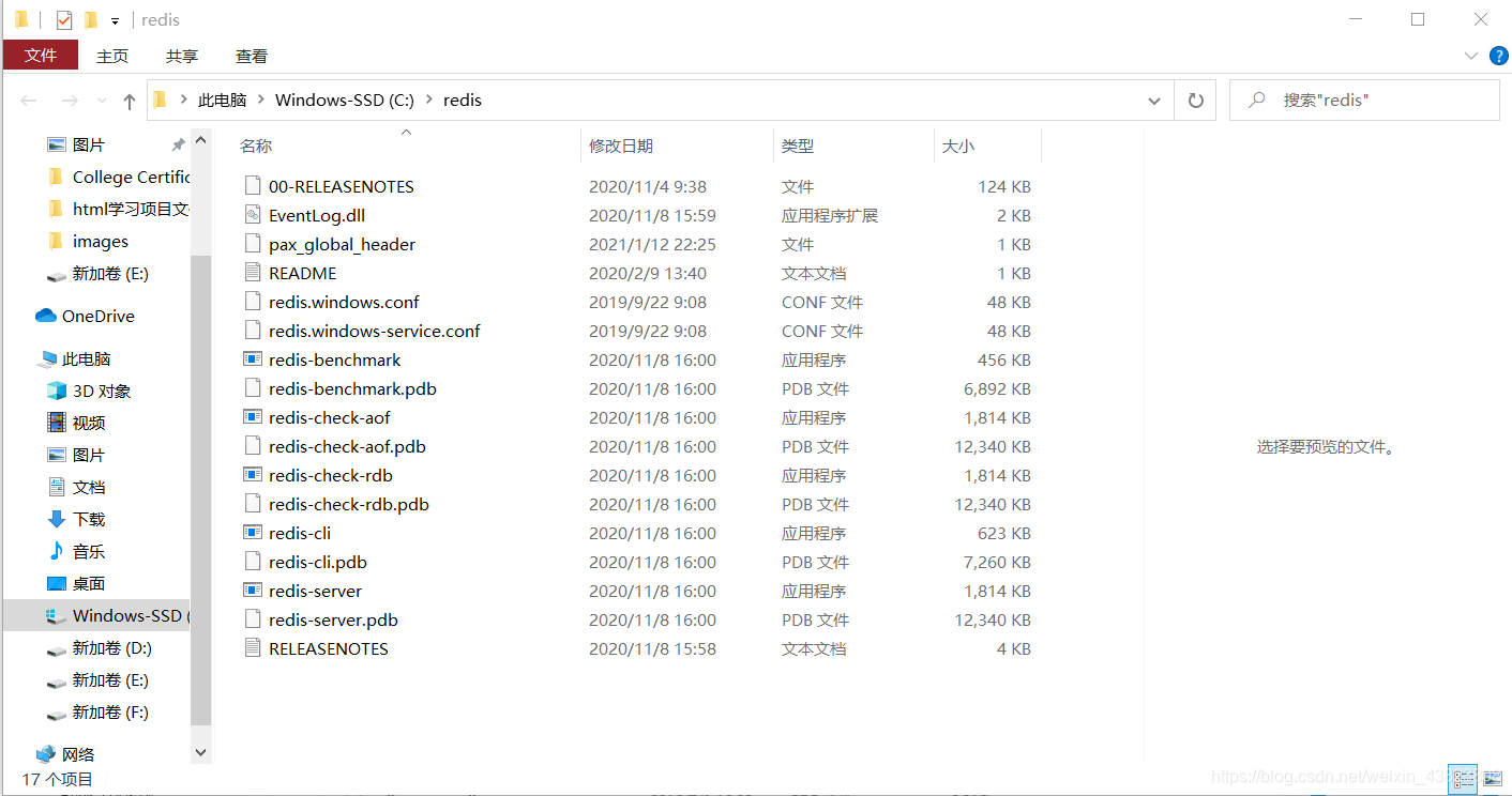 Redis 支持 32 位和64 位。这个需要根据你系统平台的实际情况选择,这里我们下载Redis-x64-xxx.zip 压缩包到C 盘,解压后,将文件夹重新命名为redis。