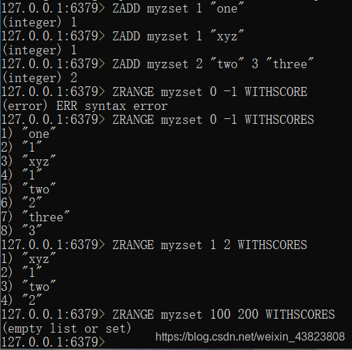 Redis Zrange 返回有序集中,指定区间内的成员。