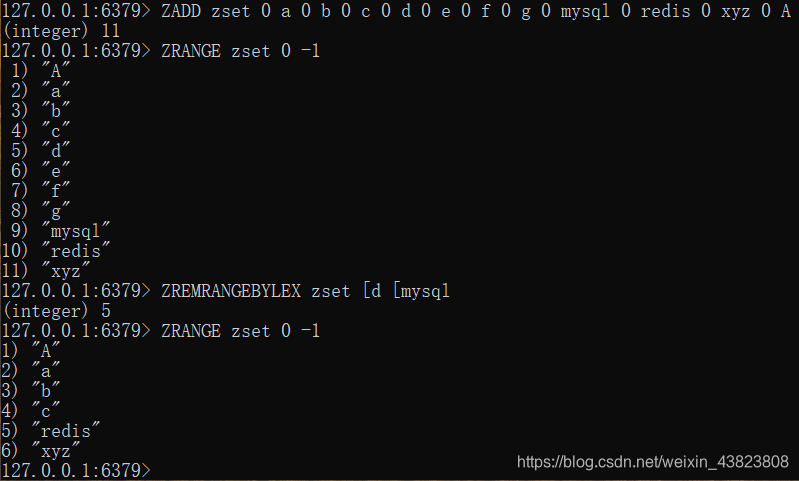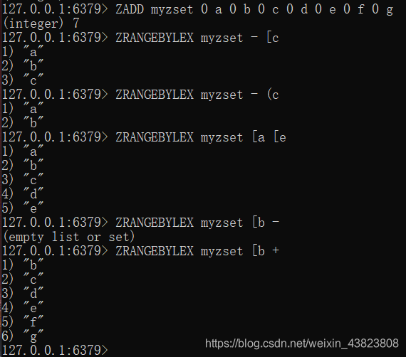 Redis Zrangebylex 通过字典区间返回有序集合的成员。