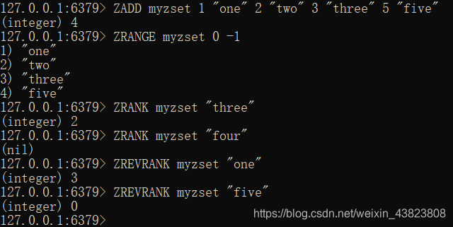 使用 ZRANK 命令可以获得成员按分数值递增(从小到大)排列的排名。