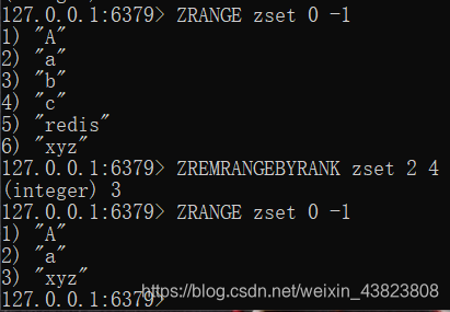 redis 127.0.0.1:6379> ZREMRANGEBYRANK key start stop