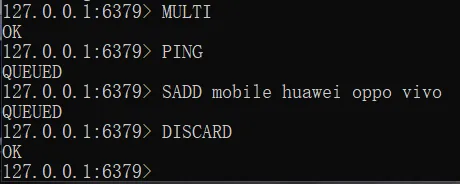 Redis Discard 命令用于取消事务,放弃执行事务块内的所有命令。