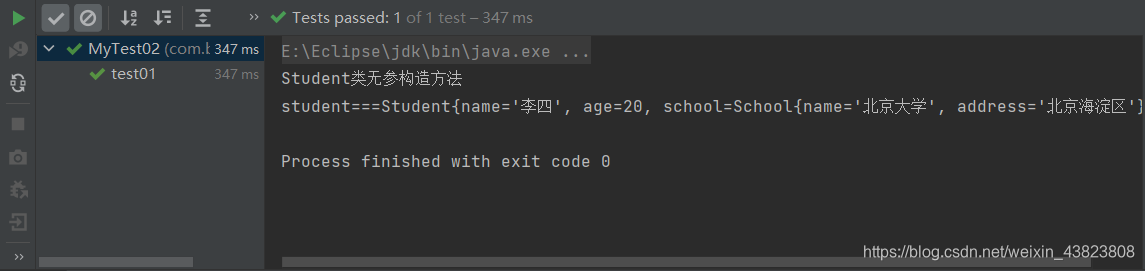 @Test public void test01() { String config="ba05/applicationContext.xml"; ApplicationContext ctx=new ClassPathXmlApplicationContext(config); Student student= (Student) ctx.getBean("myStudent"); System.out.println("student===" + student); }
