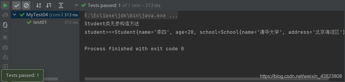@Test public void test01() { String config="ba04/applicationContext.xml"; ApplicationContext ctx=new ClassPathXmlApplicationContext(config); Student student= (Student) ctx.getBean("myStudent"); System.out.println("student===" + student); }