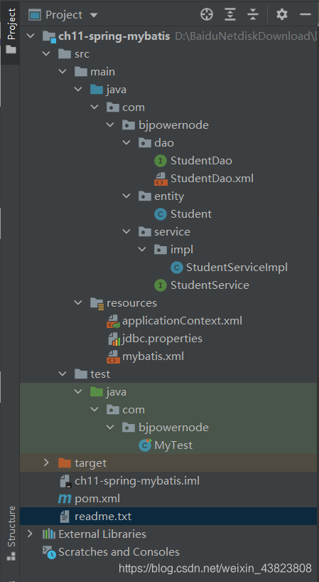这里先给出spring整合mybatis之后,整个项目的架构图。