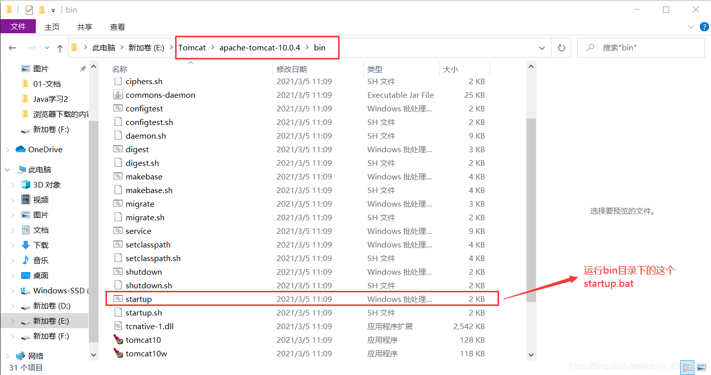 然后运行bin目录下的startup.bat。