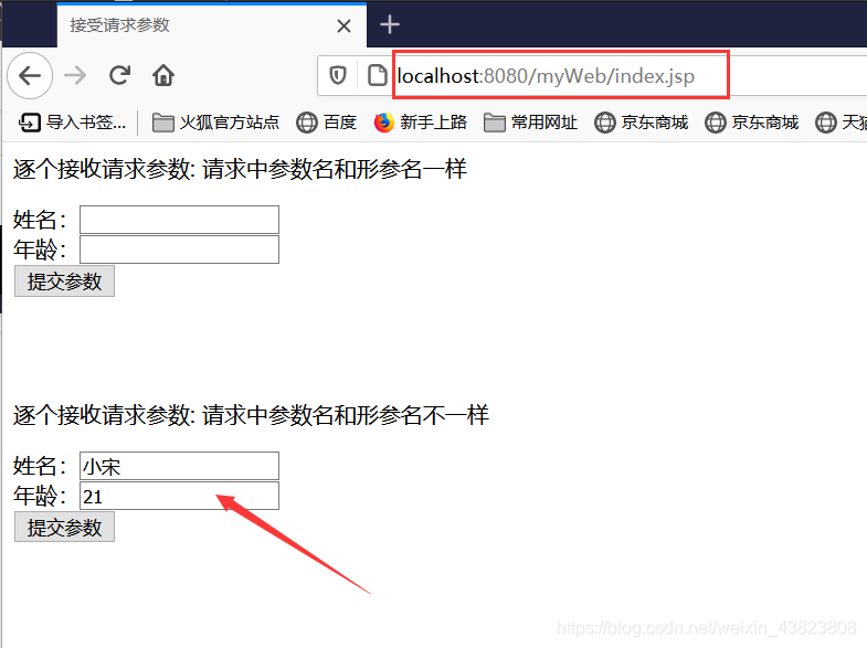 2.1 逐个接收请求参数:请求中的参数名和控制器方法的形参名一样