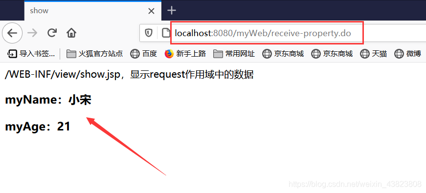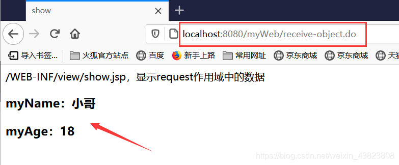 <%@ page contentType="text/html;charset=utf-8" language="java" %> <html> <head> <title>show</title> </head> <body> /WEB-INF/view/show.jsp,显示request作用域中的数据<br/> <h3>myName:${myName}</h3> <h3>myAge:${myAge}</h3> </body> </html>