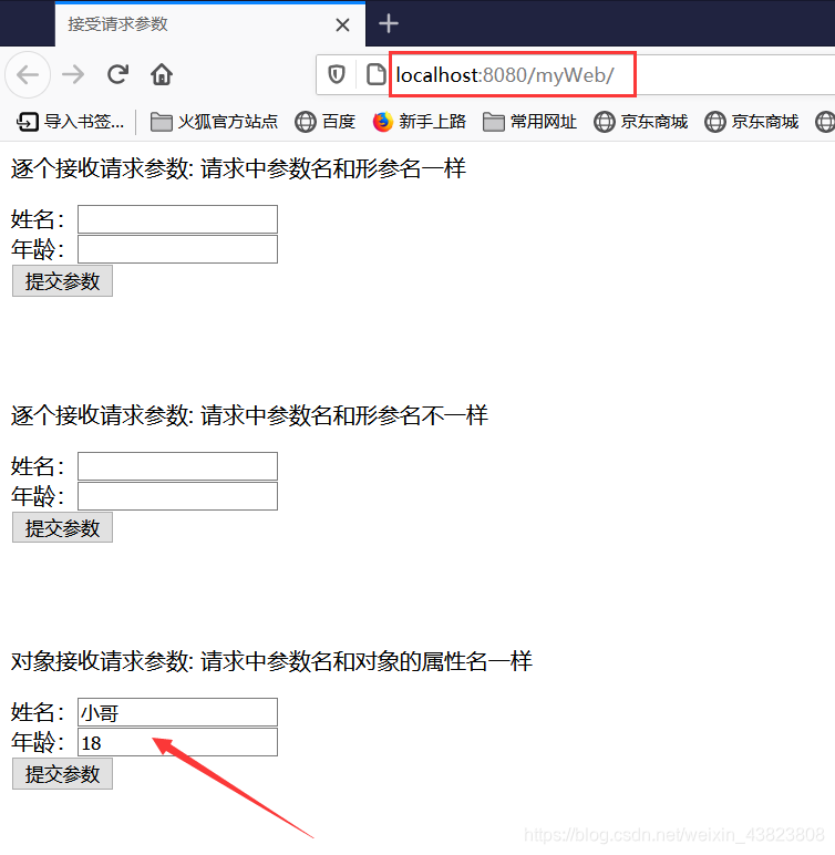 2.3 对象接收请求参数:对象的属性名和控制器方法的形参名一样