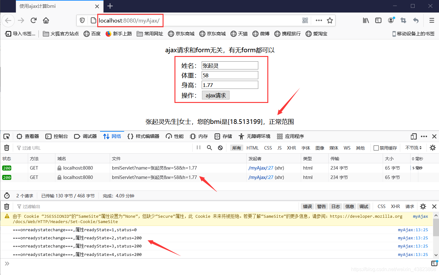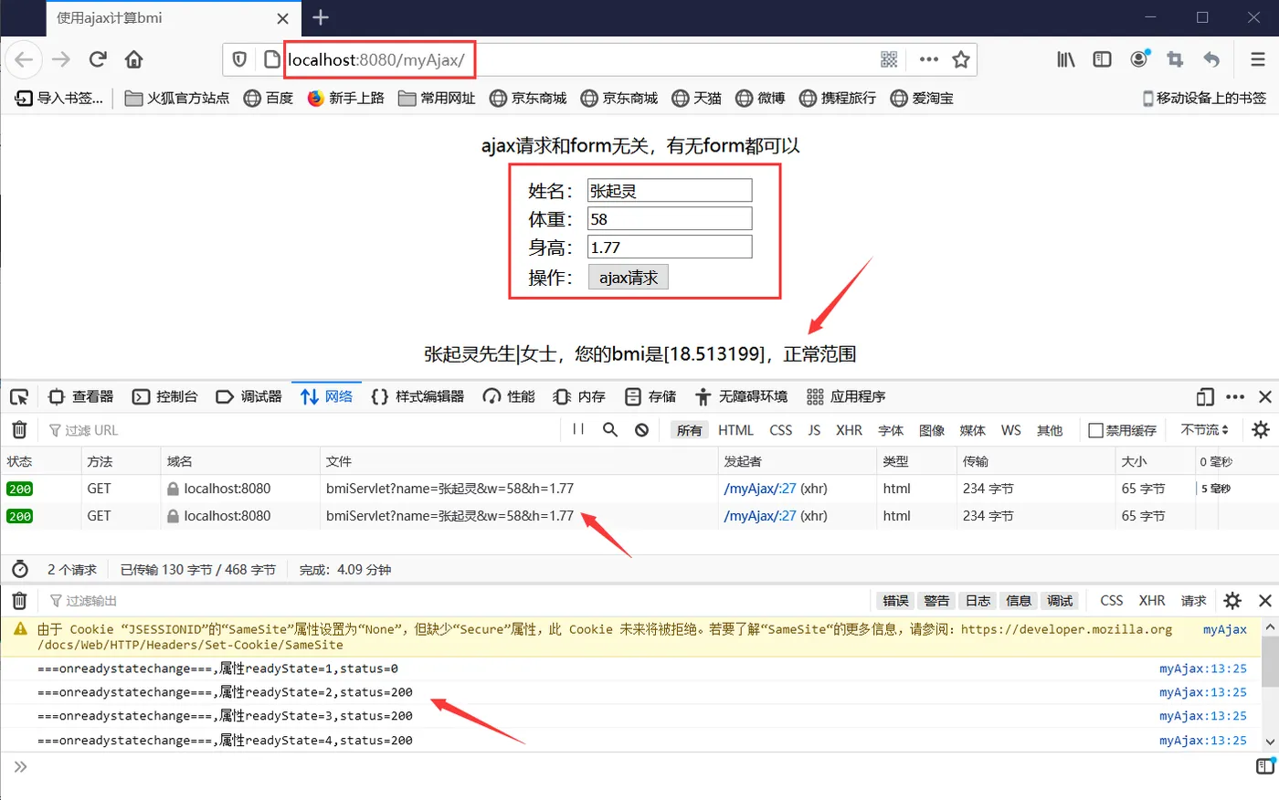 6.AJAX的第一个例子(接收参数并计算bmi指数)