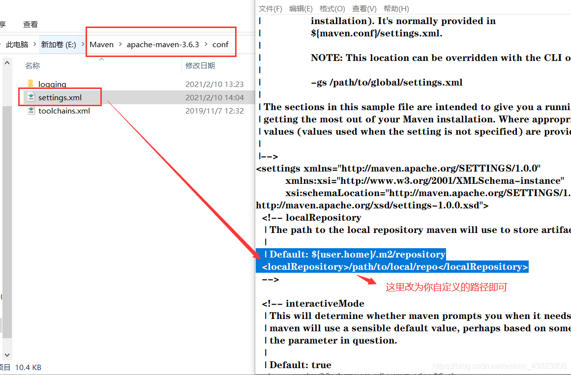 我这里没有修改,直接就放在了C盘下面。当然也可以修改本地仓库的存放位置: