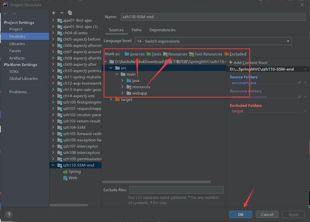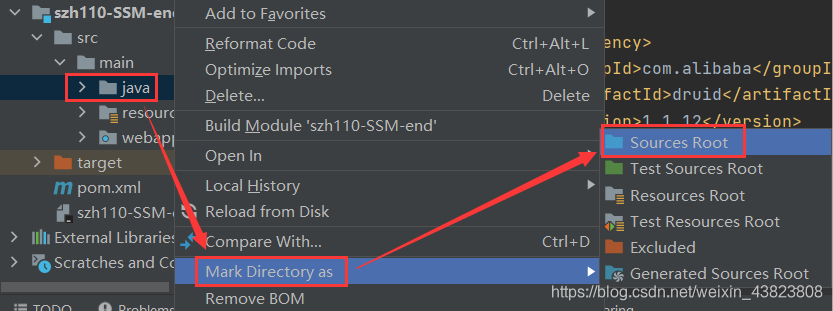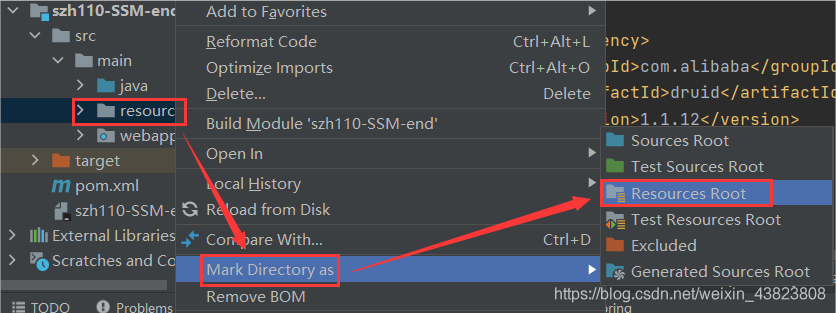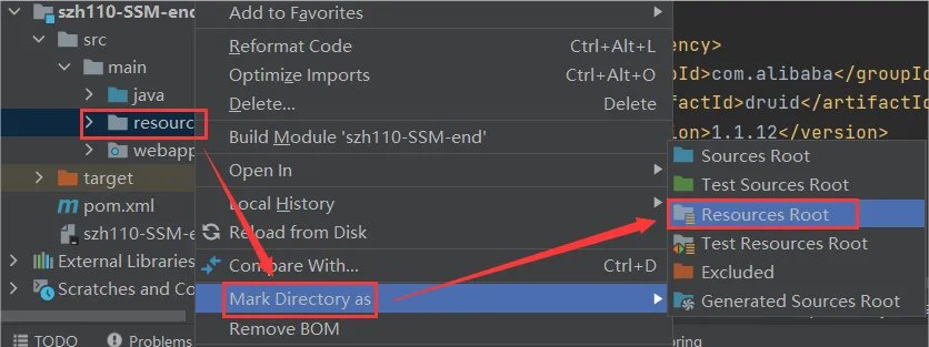 如果是test目录下的java和resources,则对应的修改为 Test Sources Root和Test Resources Root即可。