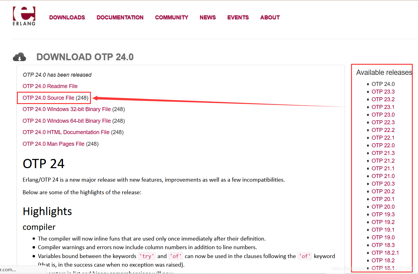 Erlang官方下载地址:https://www.erlang.org/downloads