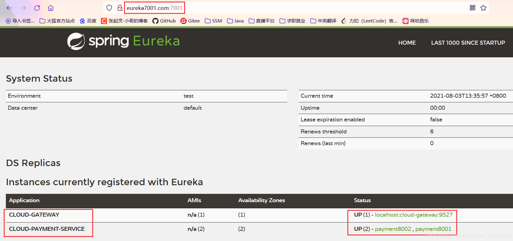 eureka7001这个注册中心中,可以看到我们的两个微服务已经注册进来了。