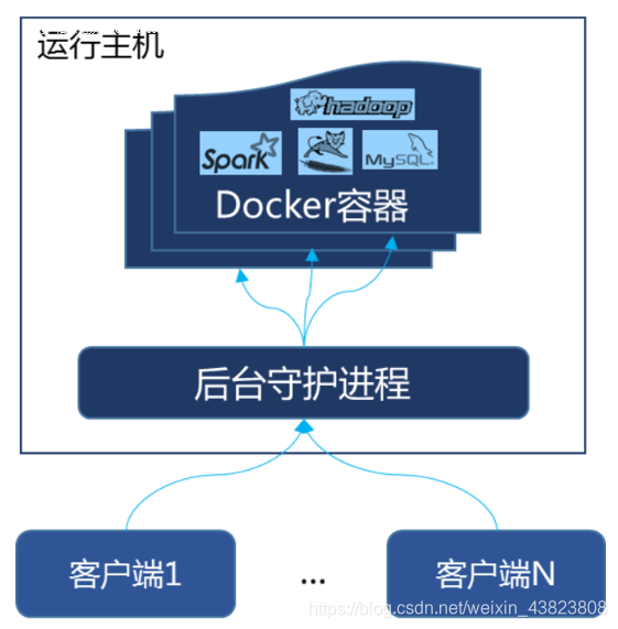 · 蓝色的大海:就是docker依赖的宿主机OS。