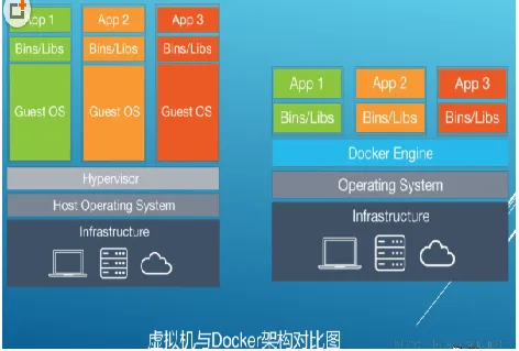 · 鲸:就是docker,这只鲸需要有大海才可以遨游,也就是说docker需要依赖宿主机OS。