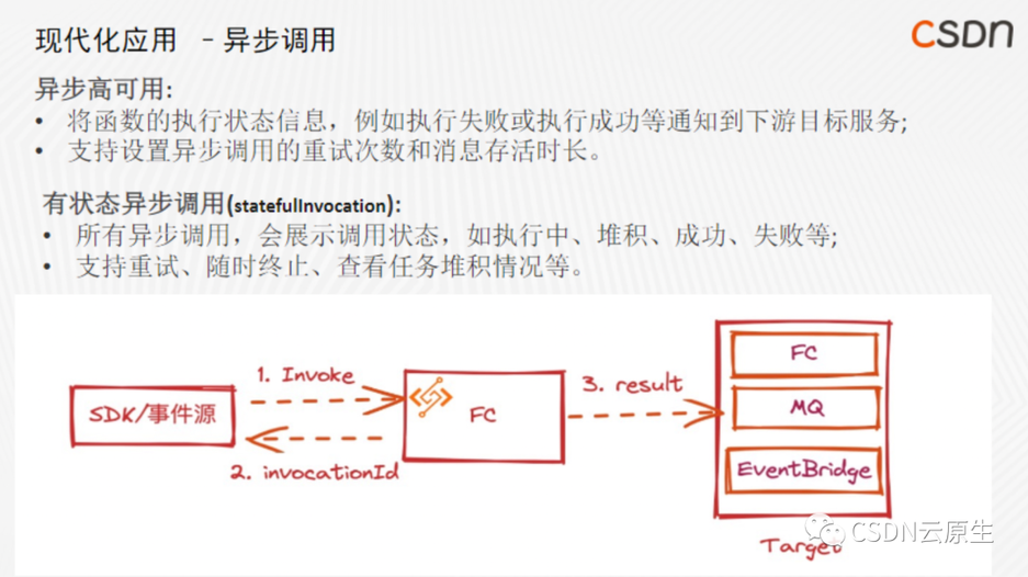 ●由于网络时延等问题,需要设计失败重试机制这些特性完全是为 Serverless 量身打造的。实现方案还使用了异步函数,将构建的所有流程导到异步函数中处理,整个编排逻辑通过 Serverless Devs 进行,完美实现了一个性能稳定的 CD 构建集群。阿里云函数计算应用中心这款产品的底层的 CD 能力完全基于上述的原理进行实践,大家可以自行体验。