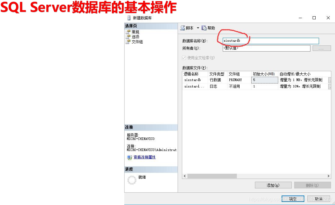 1、使用SQL Server Management Studio (创建/修改/删除)数据库