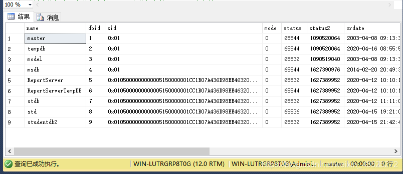 -- 查询数据库里面的所有数据库 select *from sysdatabases