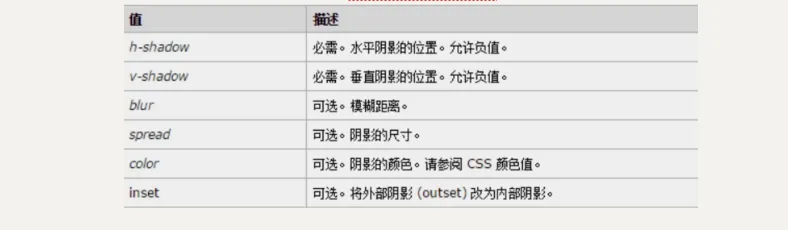 box-shadow:水平阴影 垂直阴影 模糊距离 阴影尺寸 阴影颜色 内/外阴影;