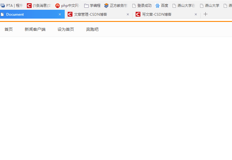 <!DOCTYPE html> <html lang="en"> <head> <meta charset="UTF-8"> <title>Document</title> <style> .nav { height: 50px;/* 高度是 50*/ border-top: 3px solid #FF8500; /*上边框是 3像素*/ border-bottom: 1px solid #EDEEF0; /*下边框是 1像素*/ background-color: #FCFCFC; /*背景颜色*/ } .nav a { /*鼠标正常时候的样子*/ height: 50px; line-height: 50px; /*background-color: pink;*/ display: inline-block; /*转换*/ color: #4c4c4c; text-decoration: none; /*padding-left: 18px; padding-right: 18px;*/ padding: 0 18px; font-size: 14px; } .nav a:hover { background-color: #edeef0; color: #ff8400; } </style> </head> <body> <div class="nav"> <a href="#">首页</a> <a href="#">新闻客户端</a> <a href="#">设为首页</a> <a href="#">极限挑战</a> </div> </body> </html>