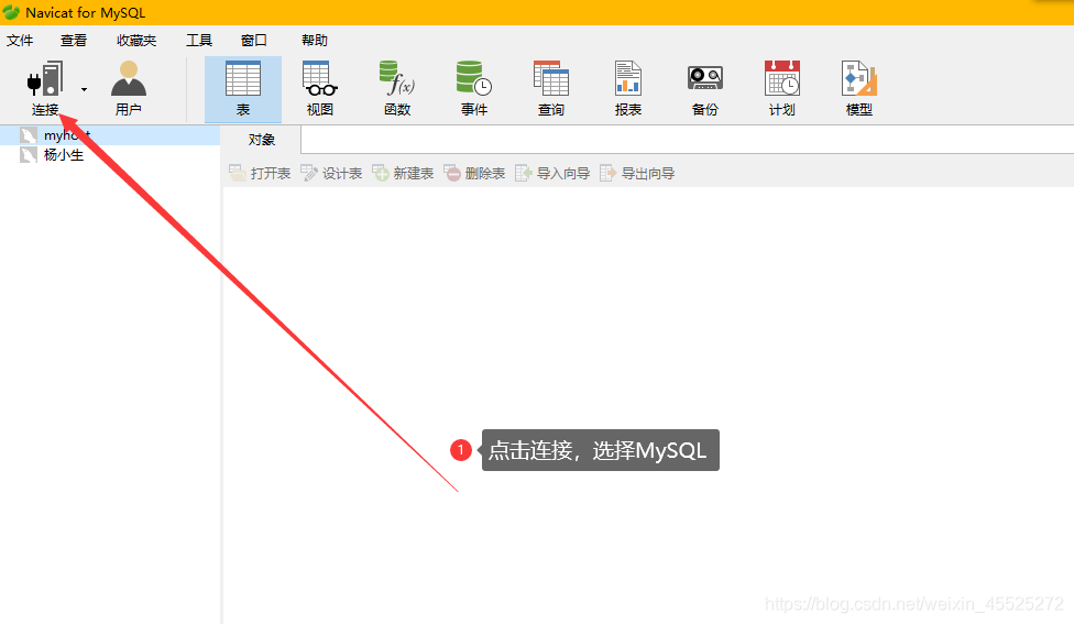 - 点击连接选择MySQL