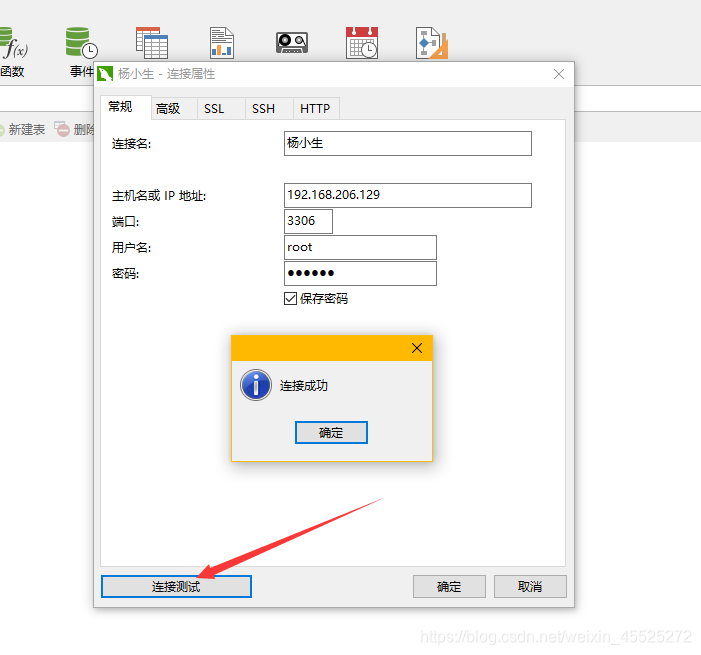 - 点击连接测试查看是否成功