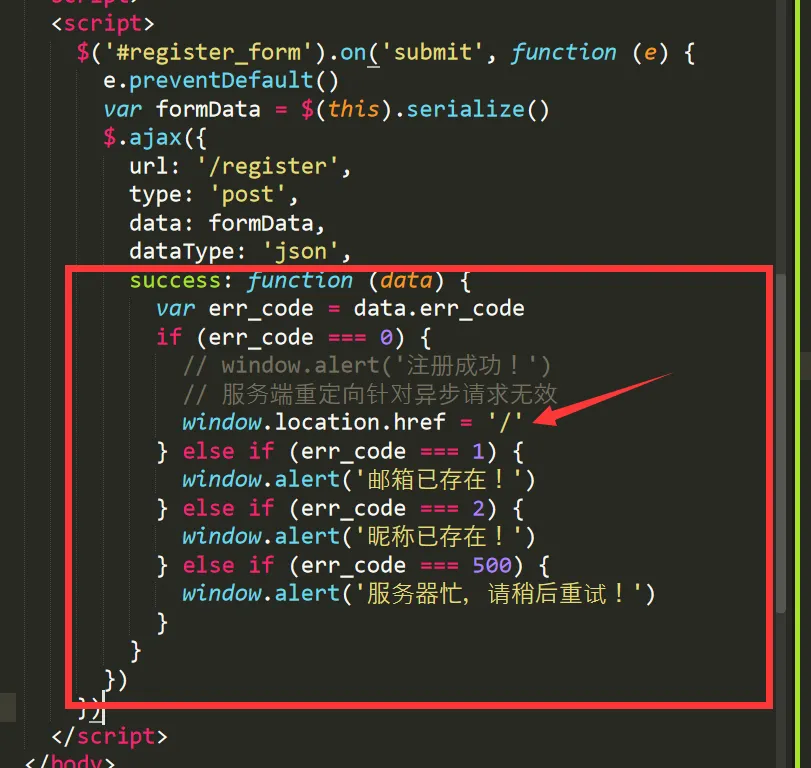 我们在客户端用ajax就能有效解决,我们在客户端 success 回调函数中,判断返回的数据来判断是否成功,是否需要重定向
