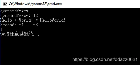 /****************** Author : 杨永利 data : 2020-06-28 *******************/ #include <string.h> #include <assert.h> #include <iostream> using namespace std; class String { public: String(const char *str = NULL); //通用构造函数 String(const String &str); //拷贝构造函数(深赋值) ~String(); //析构函数 String operator+(const String &str) const; //重载+ String& operator=(const String &str); //重载= String& operator+=(const String &str); //重载+= bool operator==(const String &str) const; //重载== char& operator[](int n) const{assert(n <= length - 1); return data[n]; } //重载[](内联函数) size_t size() const{ return length; } //长度接口(内联函数) const char* c_str() const{ return data; } //数据接口(内联函数) friend istream& operator>>(istream &is, String &str);//输入 friend ostream& operator<<(ostream &os, String &str);//输出 private: char *data; //字符串 size_t length; //长度 }; String::String(const char *str) { if(str == NULL) { length = 0; data = new char[1]; *data = '\0'; }else{ length = strlen(str); data = new char[length + 1]; strcpy(data, str); } } String::String(const String &str) { length = str.size(); data = new char[length + 1]; strcpy(data, str.c_str()); } String::~String() { delete []data; length = 0; } String String::operator+(const String &str) const { String newString; newString.length = length + str.size(); newString.data = new char[newString.length + 1]; strcpy(newString.data, data); strcat(newString.data, str.data); return newString; } String& String::operator=(const String &str) { if(this == &str) { return *this; } delete []data; length = str.size(); data = new char[length + 1]; strcpy(data, str.c_str()); return *this; } String& String::operator+=(const String &str) { if(str.size() == 0) { return *this; } length += str.size(); char *t_data = new char[length + 2]; strcpy(t_data, data); strcat(t_data, str.c_str()); delete []data; data = t_data; return *this; } bool String::operator==(const String &str) const { if(length == str.size() && !strcmp(data, str.c_str())) { return true; } return false; } istream& operator >>(istream &is, String &str) { char temp[1024]; is >> temp; str.length = strlen(temp); str.data = new char[str.length + 1]; strcpy(str.data, temp); return is; } ostream& operator<<(ostream &os, String &str) { os << str.data; return os; } int main() { String s; cin >> s; cout << s << ": " << s.size() << endl; char a[] = "Hello", b[] = "World!"; String s1(a), s2(b); cout << s1 << " + " << s2 << " = " << s1 + s2 << endl; String s3 = s1 + s2; if (s1 == s3) cout << "First: s1 == s3" << endl; s1 += s2; if (true == (s1 == s3)) cout << "Second: s1 == s3" << endl; cout<<s1[3]<<endl; return 0; }