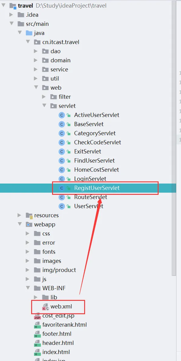 我们可以看到,在编译器里的部分只是后面web.xml到Servlet的部分。