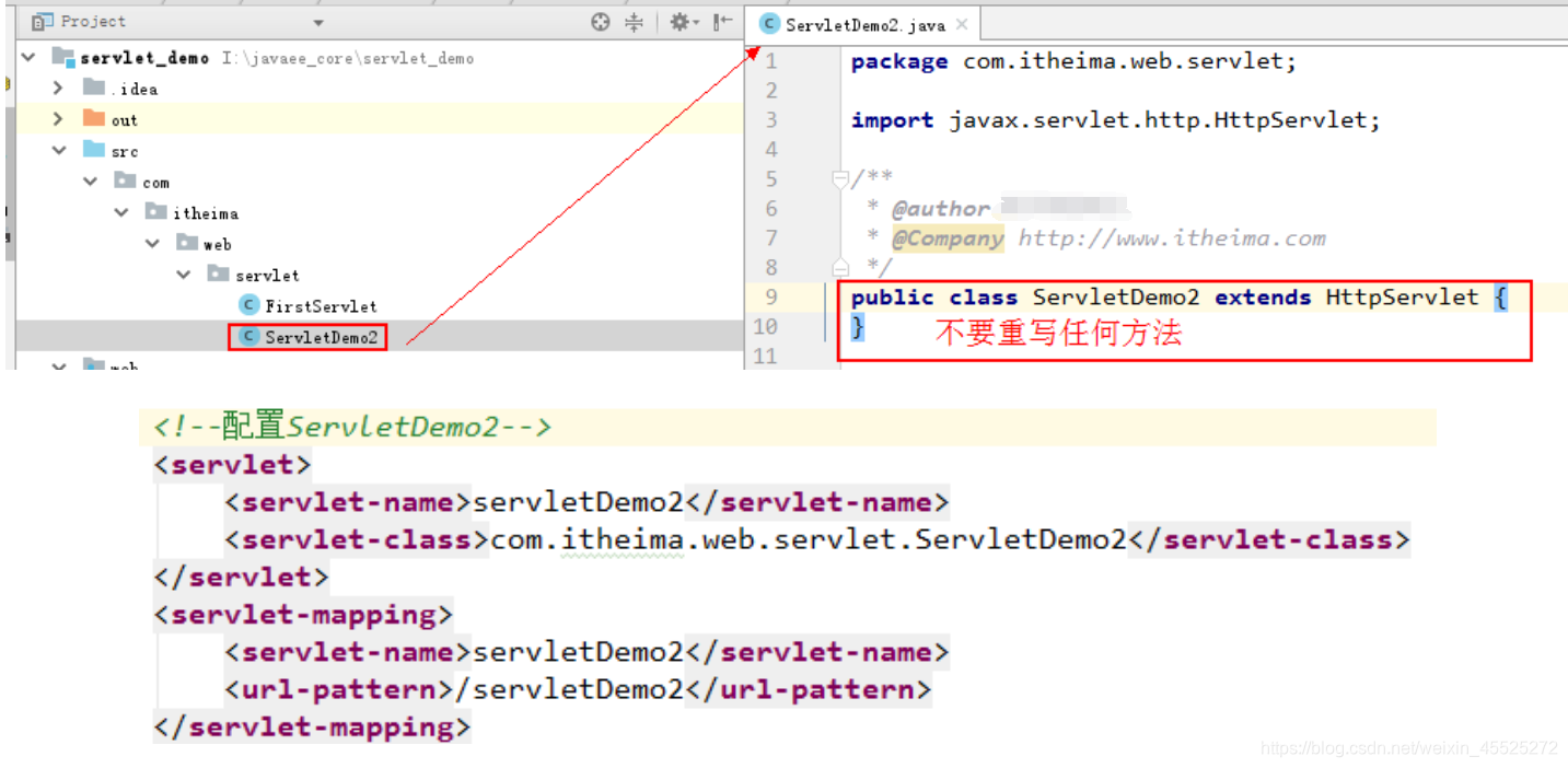 我们继承了HttpServlet,需要重写里面的doGet和doPost方法来接收get方式和post方式的请求。