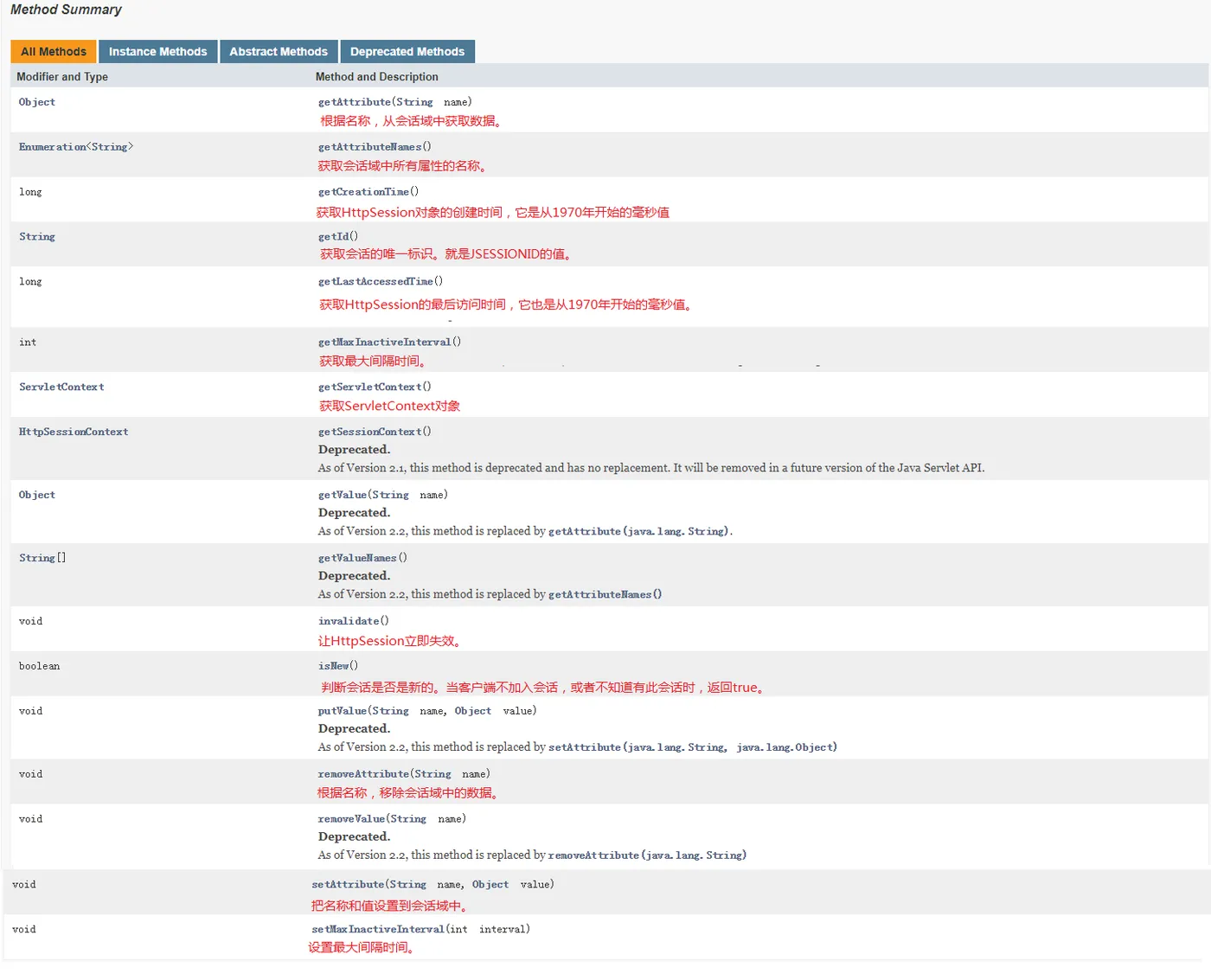 3)HttpSession的常用方法