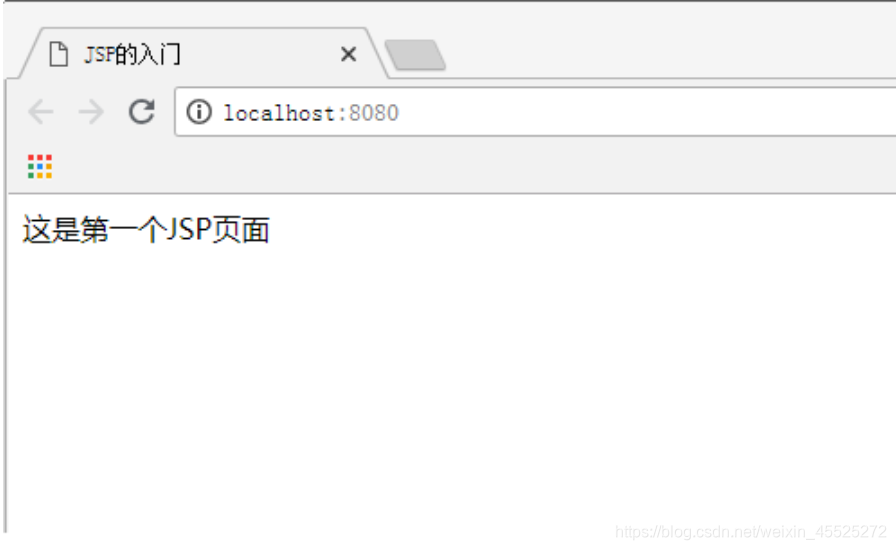 <%@ page contentType="text/html;charset=UTF-8" language="java" %> <html> <head> <title>JSP的入门</title> </head> <body> 这是第一个JSP页面 </body> </html>