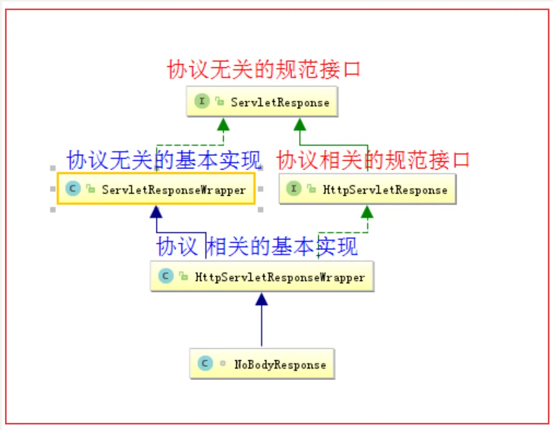 响应对象也是是Servlet规范中定义的,它包括了协议无关的和协议相关的。
