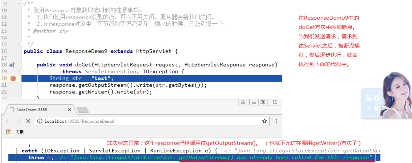 下面介绍涉及的响应对象都是和HTTP协议相关的。即使用的是HttpServletResponse接口的实现类。