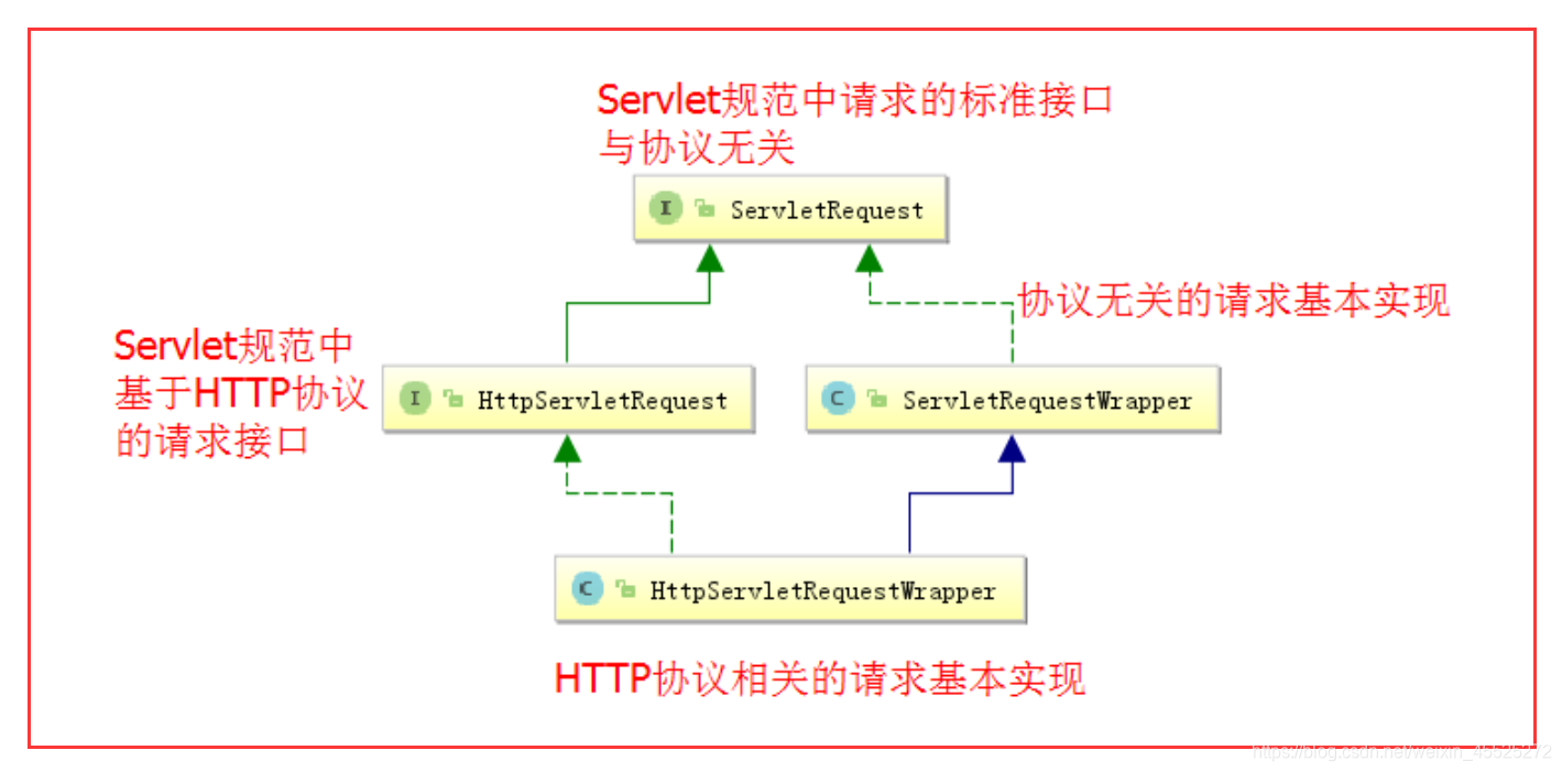 请求对象,就是在JavaEE工程中,用于发送请求的对象。我们常用的对象就是ServletRequest和HttpServletRequest,它们的区别就是是否和HTTP协议有关。