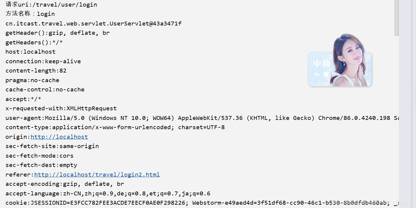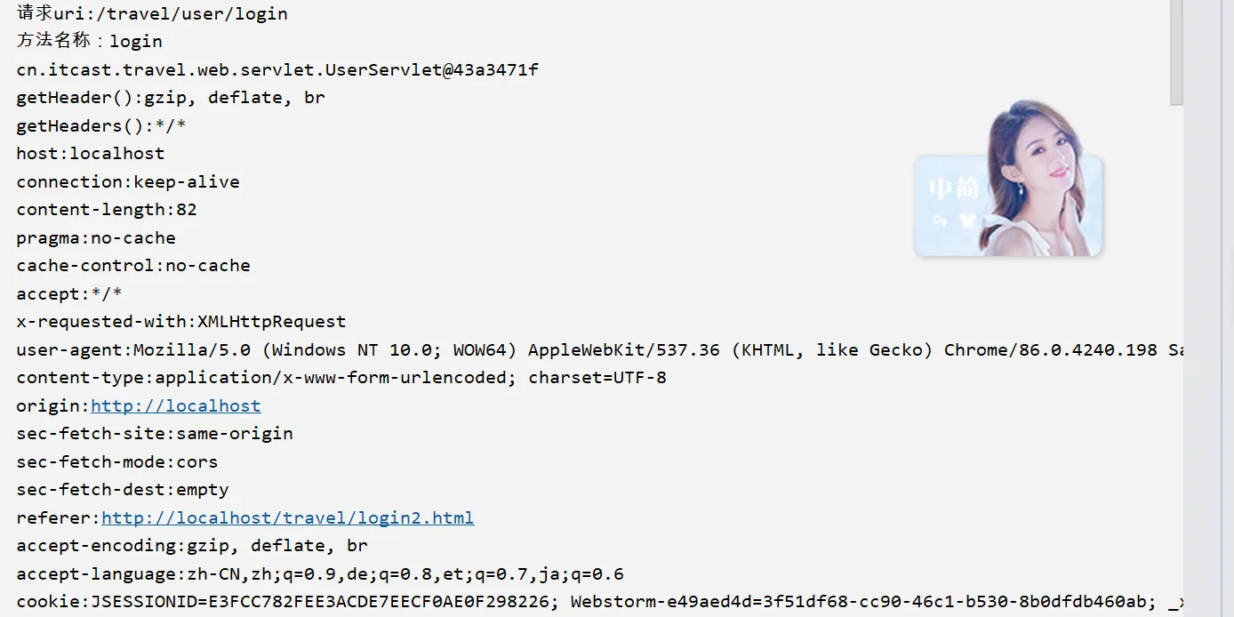 /** * 获取请求消息头 * @author 黑马程序员 * @Company http://www.itheima.com */ public class RequestDemo2 extends HttpServlet { public void doGet(HttpServletRequest request, HttpServletResponse response) throws ServletException, IOException { //1.根据名称获取头的值 一个消息头一个值 String value = request.getHeader("Accept-Encoding"); System.out.println("getHeader():"+value); //2.根据名称获取头的值 一个头多个值 Enumeration<String> values = request.getHeaders("Accept"); while(values.hasMoreElements()){ System.out.println("getHeaders():"+values.nextElement()); } //3.获取请求消息头的名称的枚举 Enumeration<String> names = request.getHeaderNames(); while(names.hasMoreElements()){ String name = names.nextElement(); String value1 = request.getHeader(name); System.out.println(name+":"+value1); } } public void doPost(HttpServletRequest request, HttpServletResponse response) throws ServletException, IOException { doGet(request, response); } }