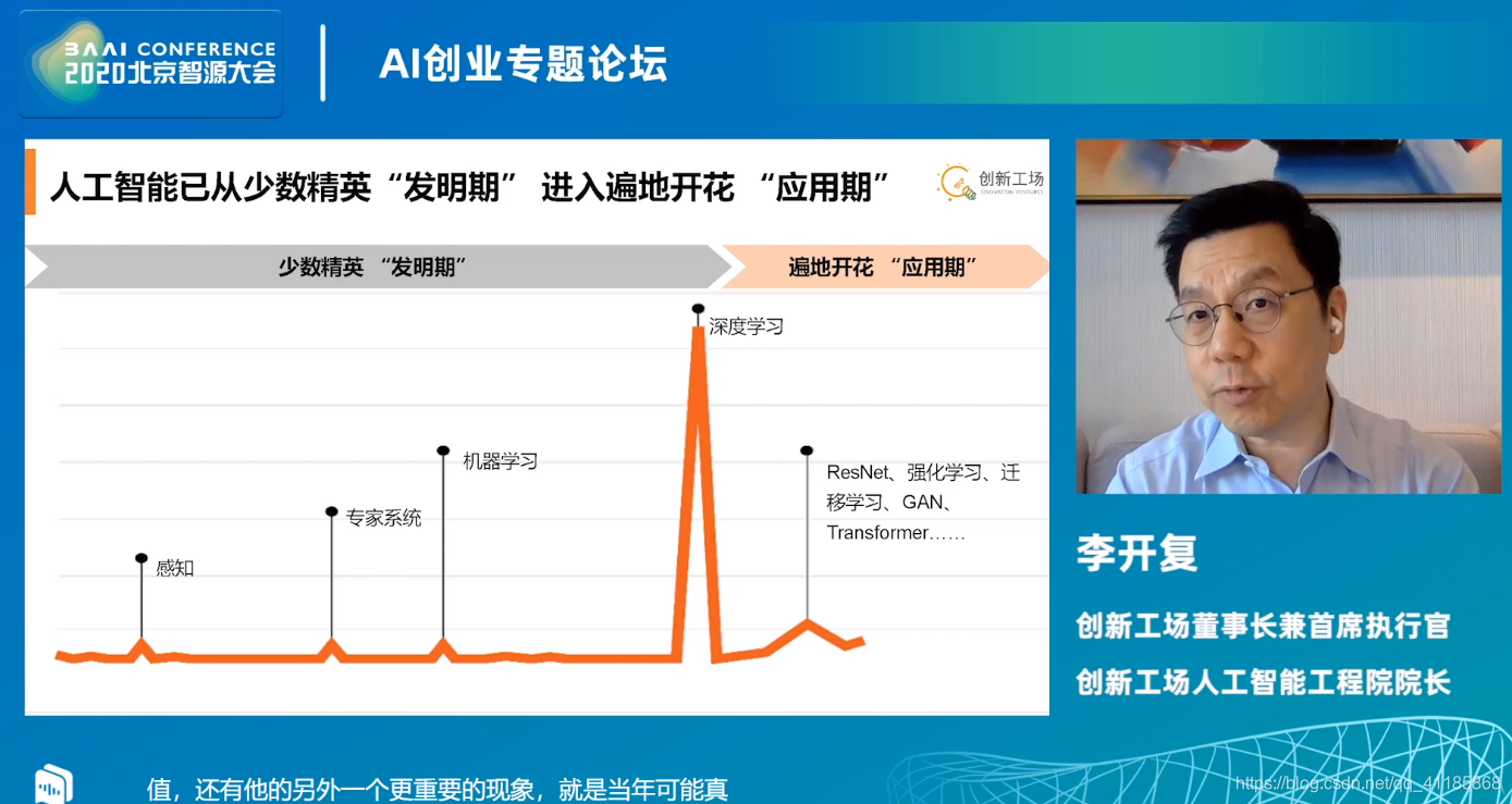 视频回放链接:2020年北京智源大会演讲分享之AI创业专题论坛——09:10-10:00 李开复教授《AI赋能时代的创业》