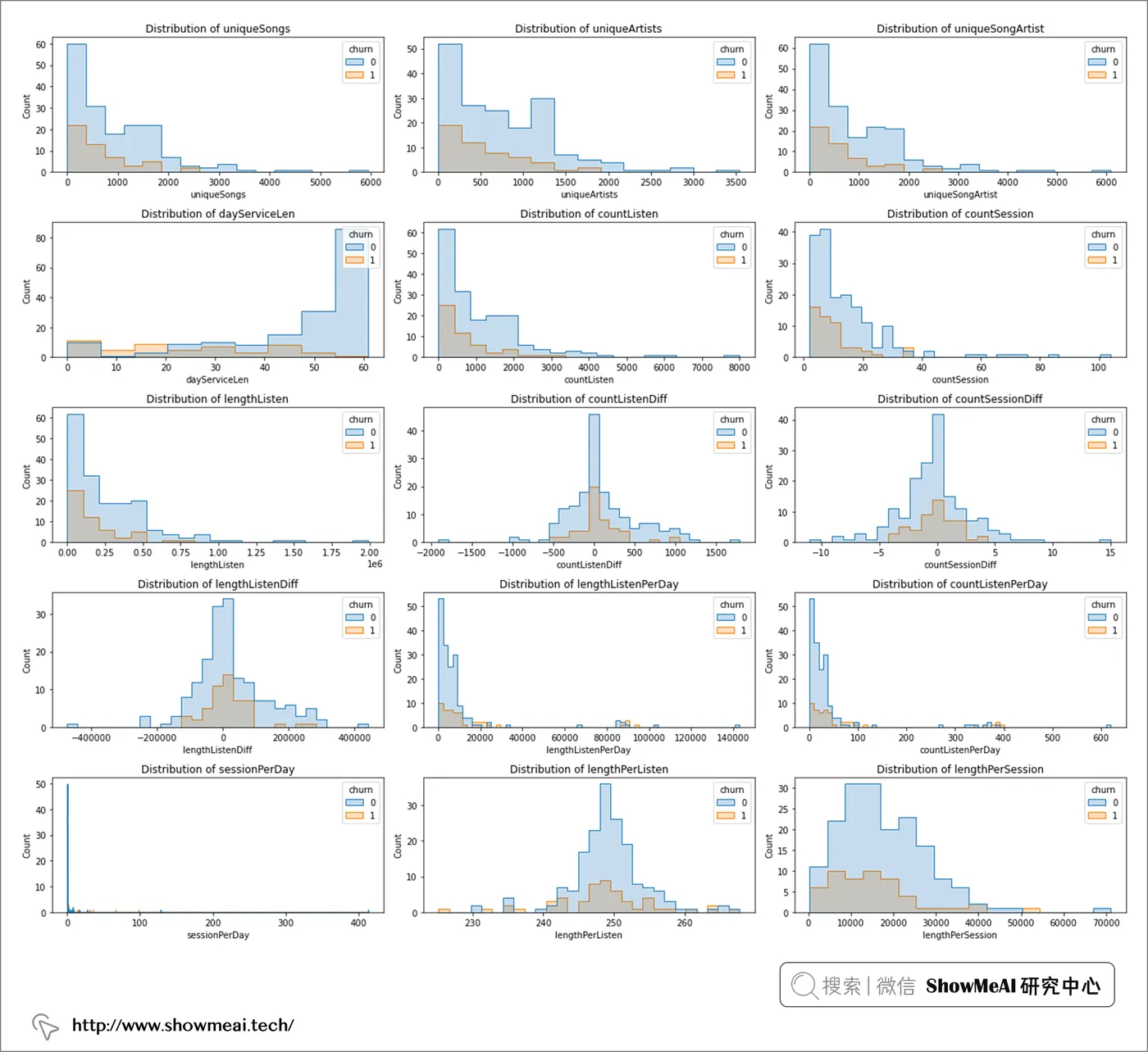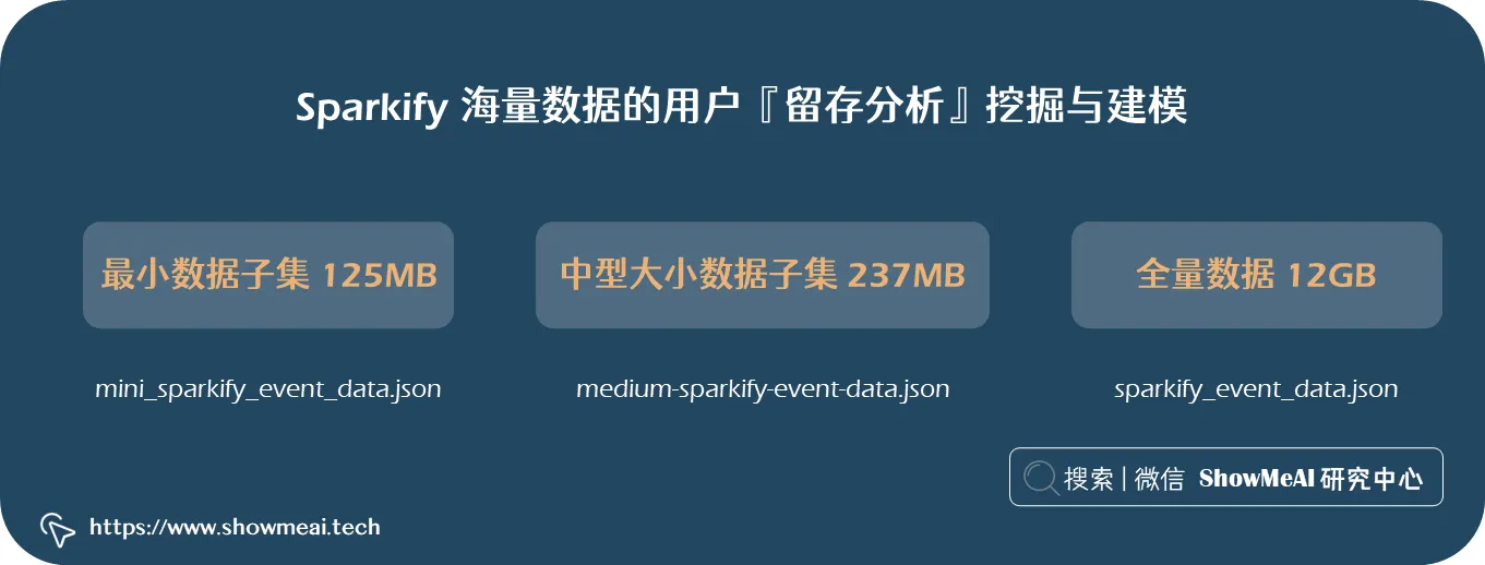- 🏆 实战数据集下载(百度网盘):公众号『ShowMeAI研究中心』回复『实战』,或者点击 这里 获取本文 [[9] Spark 海量数据上的用户留存分析挖掘与建模](https://www.showmeai.tech/article-detail/296) 『sparkify 用户流失数据集』