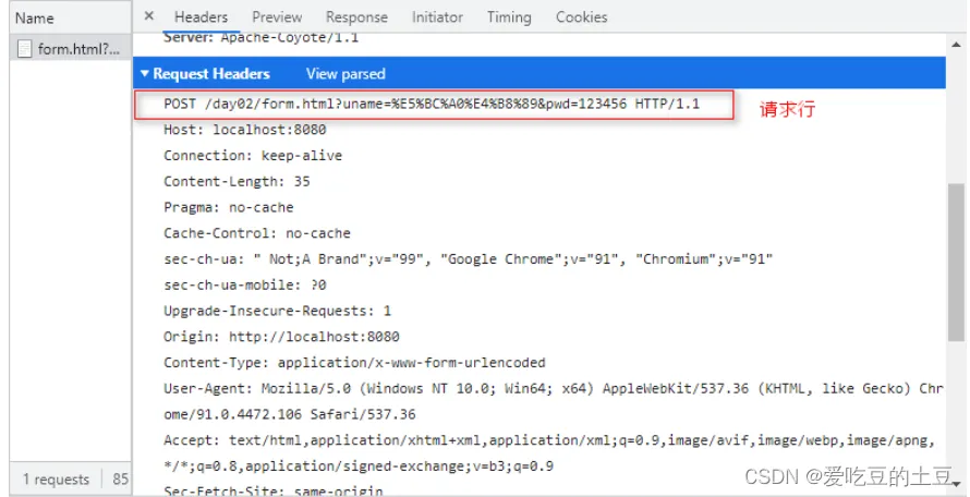 HTTP请求协议,是浏览器把信息发送给服务器的方式。