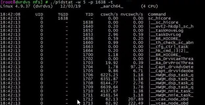 :查看某个进程中线程的上下文切换情况,下图查看的是 hicore 进程中所有的线程上下文切换情况。