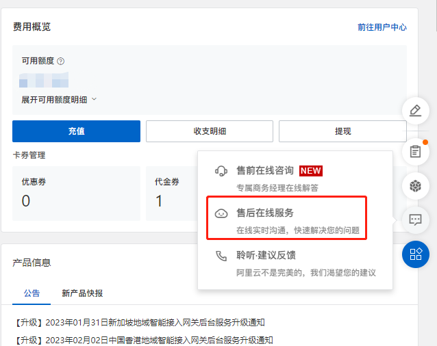 那么这样的话应该就是不支持了,这里你可以咨询一下在线技术支持,看是否有对应的源为ADB的数据迁移方案,在线技术支持入口如图