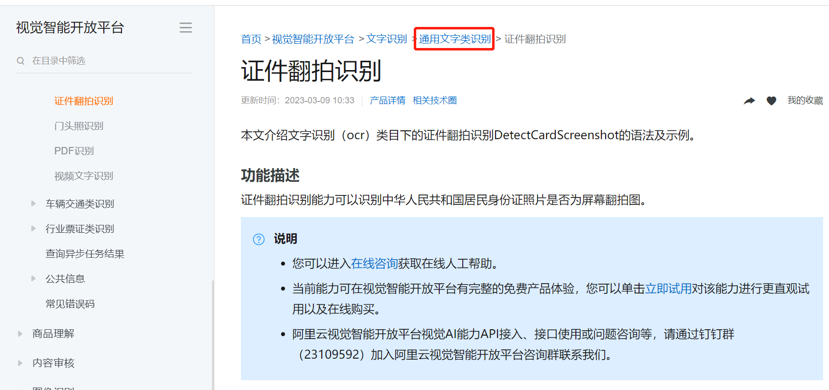 看截图时证件翻拍识别,这个接口分到通用文字类识别,证件翻拍识别目前还在公测期,是免费使用的,而通用文字识别资源包是针对通用文字识别接口的。