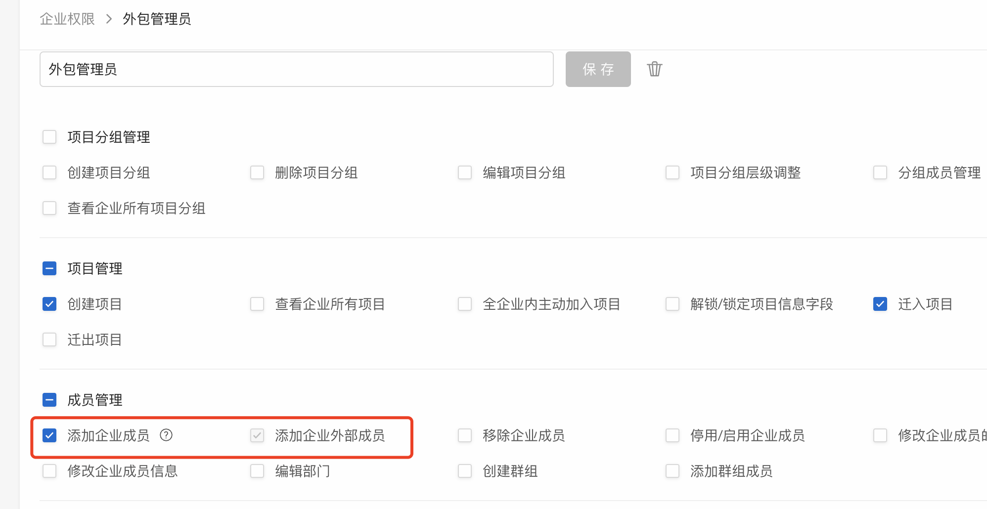 你好,根据你的需求,建议新建一个外包管理员,分配相关权限,比如成员管理等。