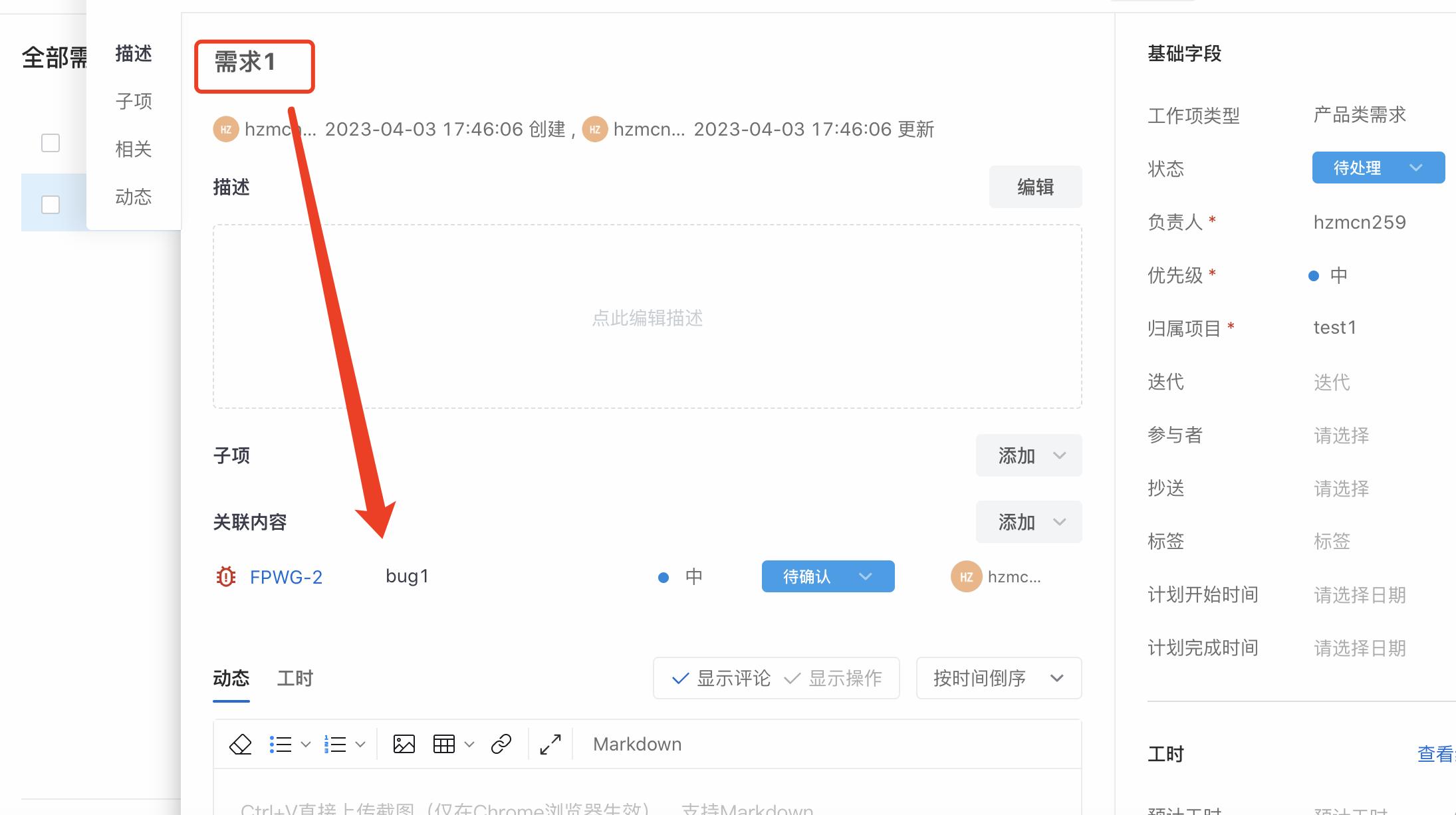 最终在需求详情页,可以看到关联的bug