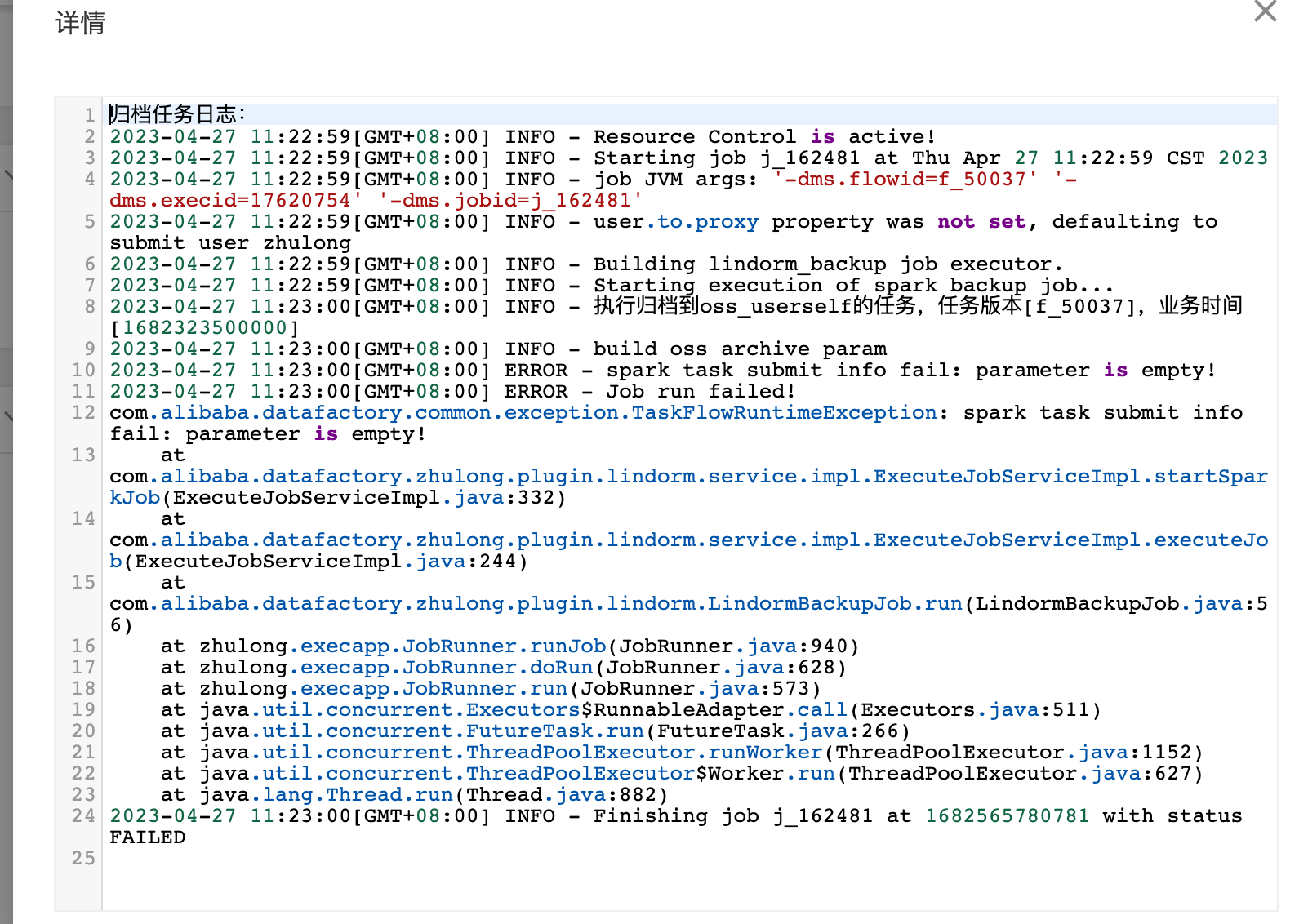 DMS昨晚发布后归档任务启动失败了,帮忙看下 8891014